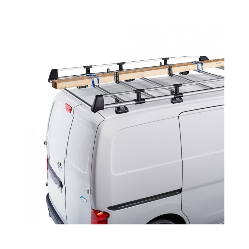 El módulo portaequipajes está fabricado con aluminio de alta calidad, con un diseño compacto, resistente y ergonómico. Incorpora un sistema de fijación rápida de los tubos de parrilla, ahora en aluminio, con una forma aerodinámica y un carril posterior para el acoplamiento de accesorios. Los perfiles laterales cuentan con una doble ranura para mayor flexibilidad y adaptabilidad a diferentes modelos de vehículo. La aerodinámica se ve mejorada gracias al nuevo deflector. El nuevo rulo de carga está diseñado para brindar mayor resistencia y durabilidad. El aspecto estético ha sido mejorado para estar alineado con los nuevos modelos de vehículos. La nueva barandilla lateral de mayor altura está fabricada completamente en aluminio, lo que brinda mayor seguridad para la carga transportada. Además, cuenta con un conjunto completo de accesorios diseñados específicamente para este portaequipajes y creados para satisfacer las necesidades del usuario profesional.